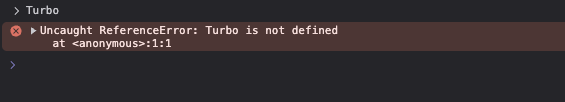To check if you’re app has TurboJS installed, visit it in a web browser, open the Web Console and type Turbo