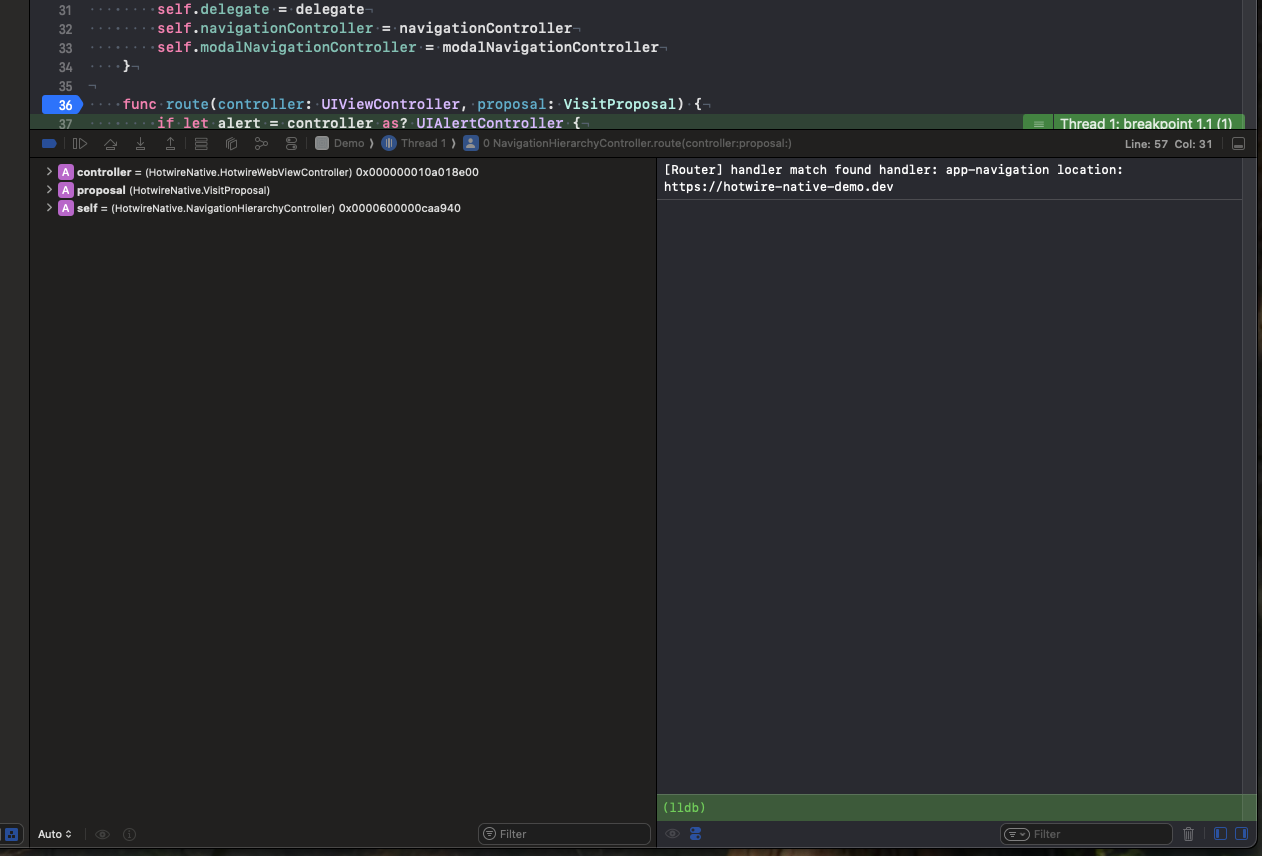 The debugger is powerful, and you can go quite deep. Since this article is aimed at Hotwire Native Developers who may be new to Android, I’ll stop here and briefly touch on Xcode.